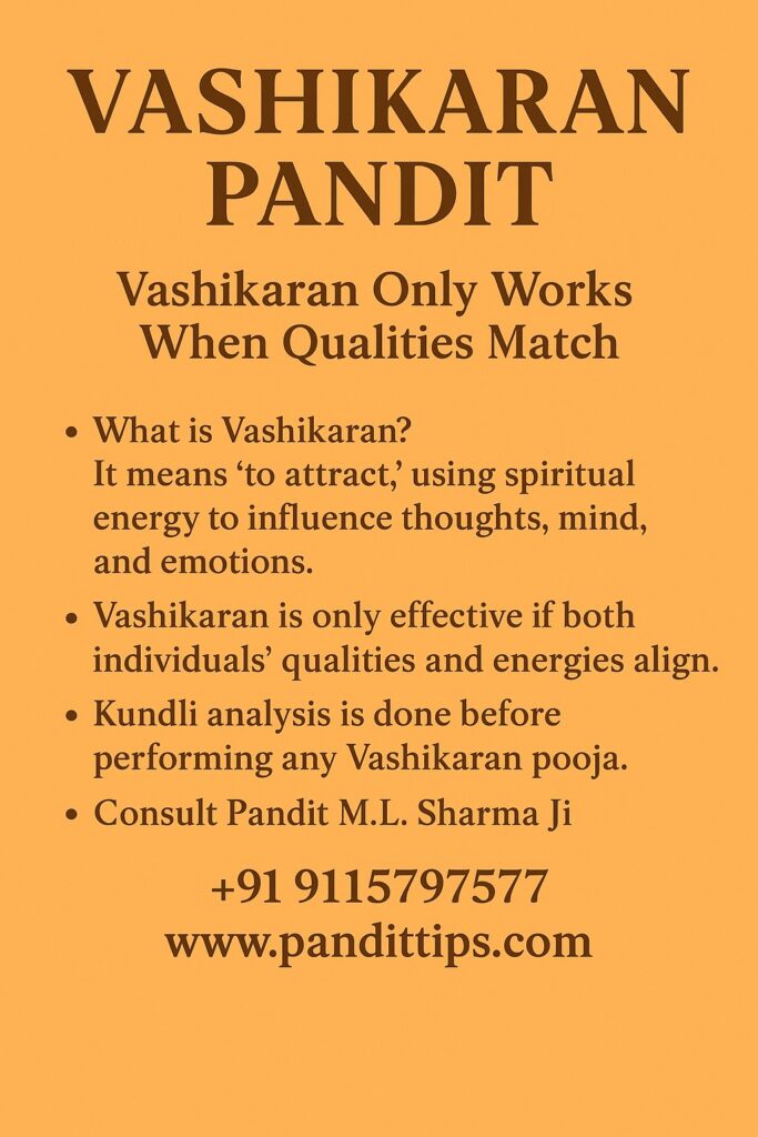 Vashikaran is a mystical spiritual science described in ancient Hindu scriptures and Tantric traditions. Its purpose is to align a person’s thoughts and emotions with your own, but it only becomes successful when performed with the correct method, pure intention, and proper energy compatibility between two individuals.